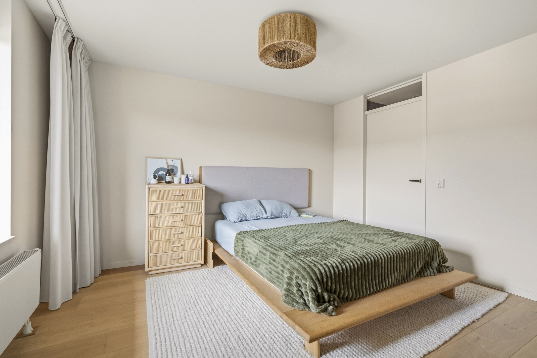 This well-laid-out apartment features a spacious living room with a brand-new open kitchen supplied and installed by Keukenloods Amsterdam, two bedrooms, a luxurious bathroom with both a shower and a bathtub, a separate toilet, and a functional laundry room with cabinetry accessible from the large bedroom and kitchen. Additionally, there is a 10 qm terrace facing southeast where you can enjoy the sun in the morning and throughout the day. The apartment has new flooring, is fully furnished by Bolia (store purchases July 2024), and comes with energy label A+.