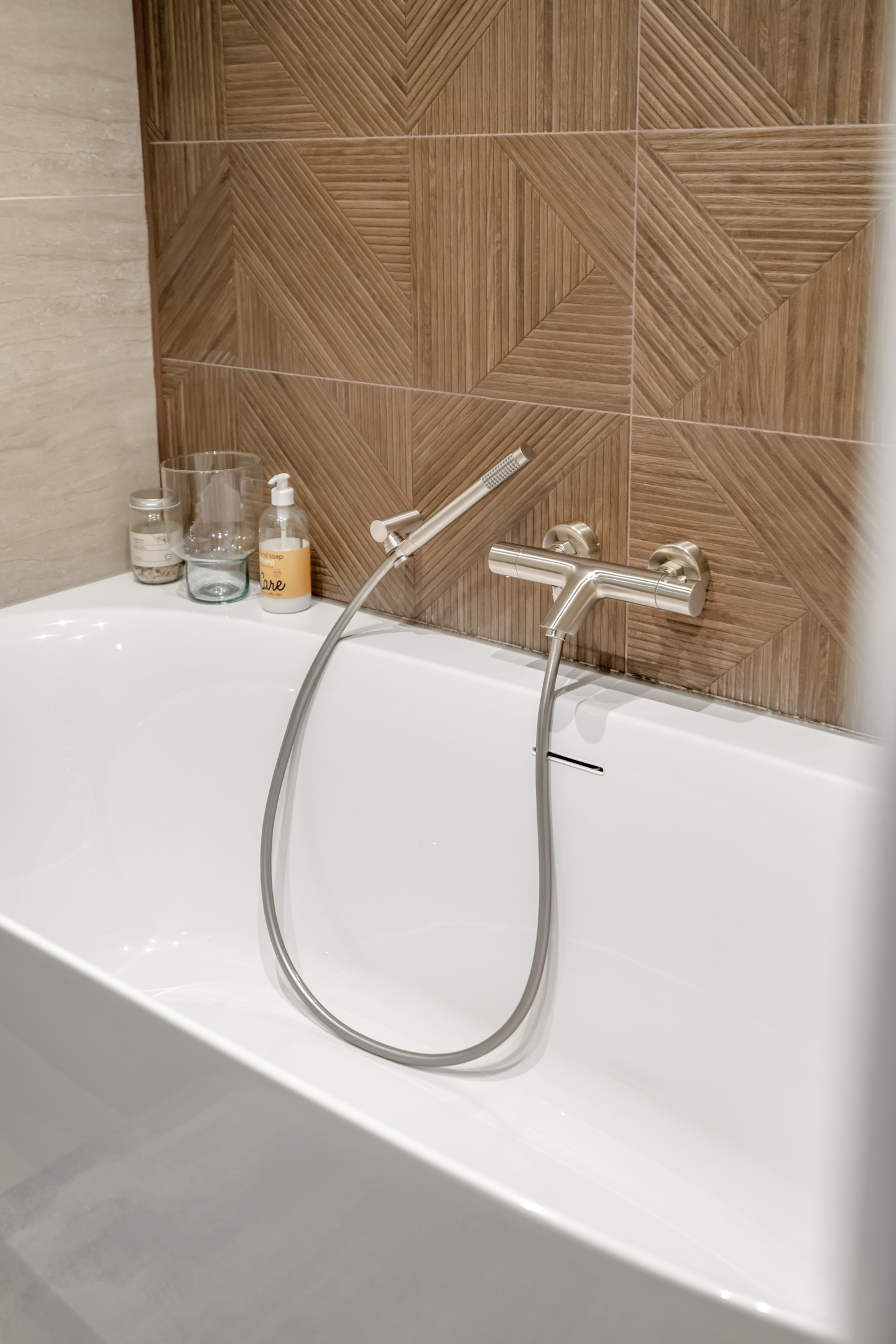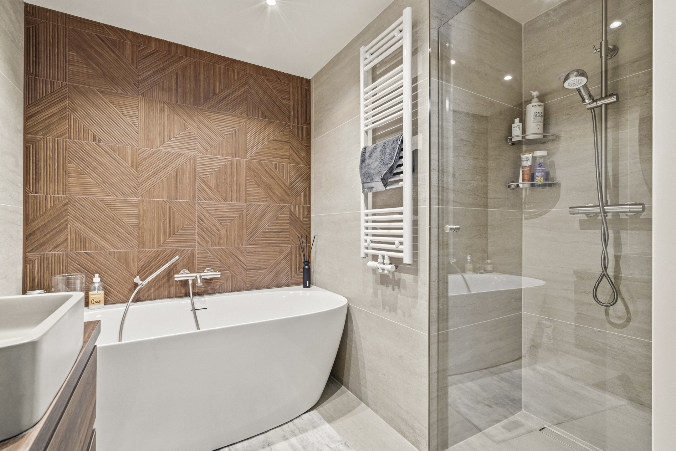 - Bathtub and shower with glass door